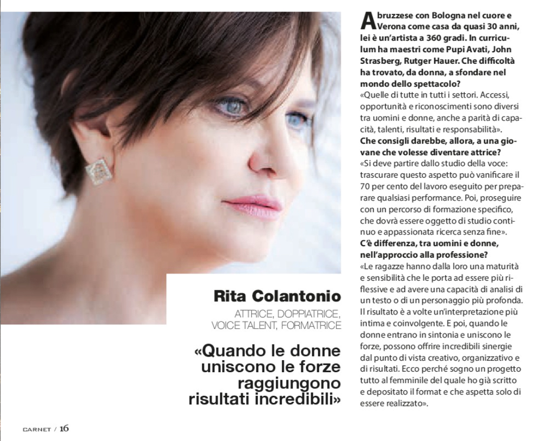 Rita Colantonio, attrice, doppiatrice, voice talent e formatrice, è la protagonista di un articolo sulla rivista Carnet Verona.